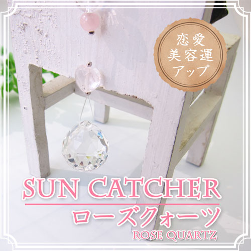 【ネコポス便送料無料】美容恋愛運アップ★お部屋に虹色の幸運を呼び込むサンキャッチャー ローズクォーツ
